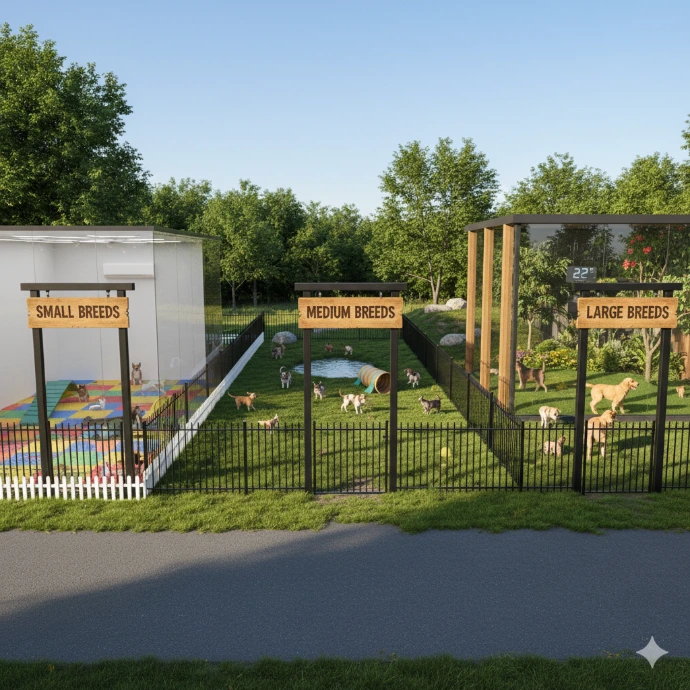 Separate Spaces for Small, Medium & Large Breeds